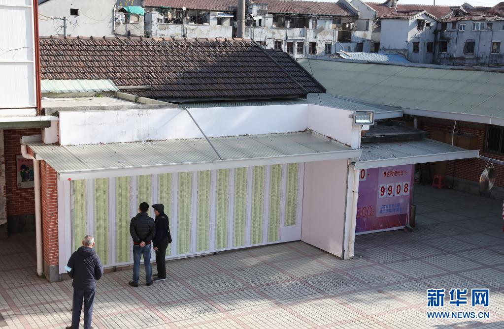 在上海楊浦區一處舊改辦公室外,幾位居民在簽約名單公示欄前駐足觀看(2020年12月9日攝)。新華社記者 方喆 攝