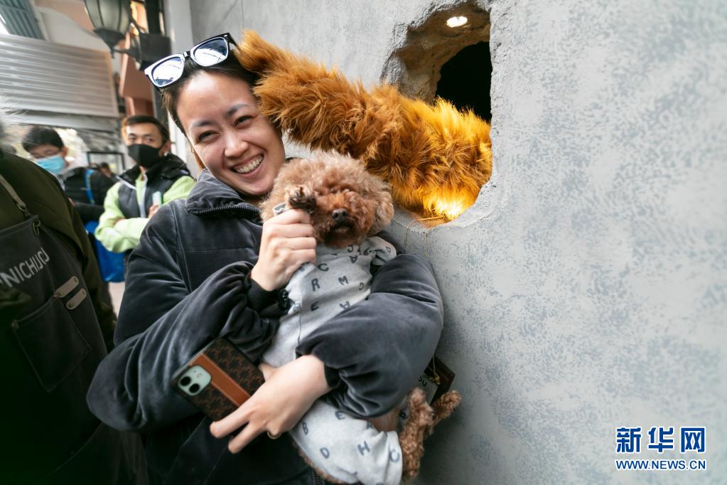 上海永康路上有個“網紅”熊爪咖啡,店長和店員都是聽障人士??蛻酎c單后,店員會從墻洞里伸出一只萌萌的熊爪,為客戶遞上一杯溫暖的咖啡。這是一名顧客與伸出洞口的“熊爪”互動(2020年12月4日攝)。新華社記者 王翔 攝