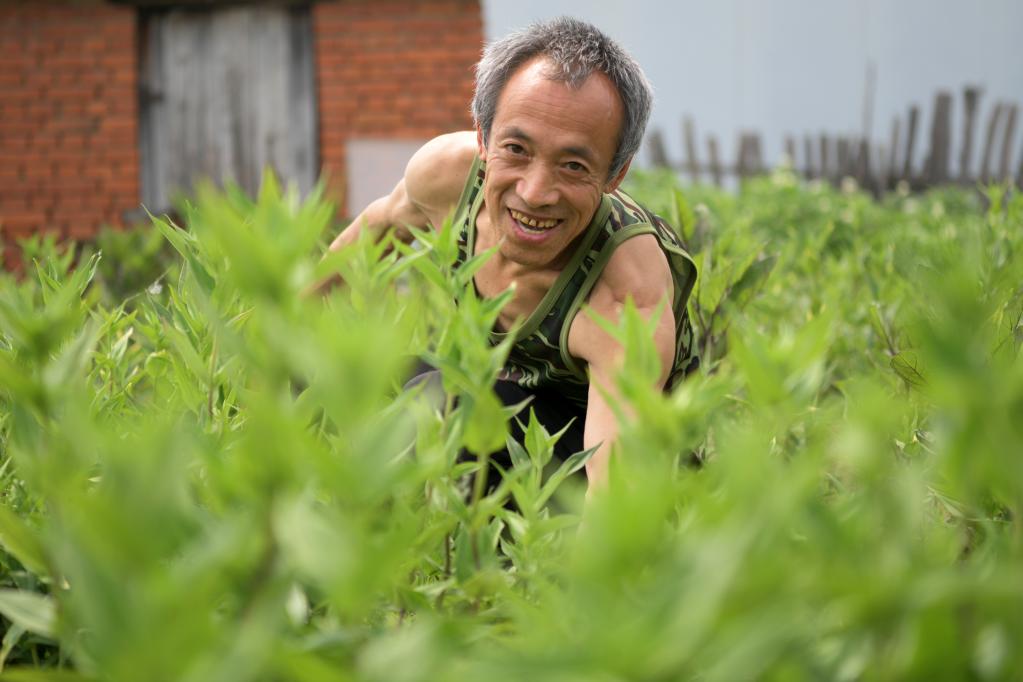 5月15日,黑龍江省望奎縣海豐鎮恭頭一村脫貧戶邊志富在中藥材基地勞作。過去,恭頭一村村民以種地為主,村里沒有產業。駐村工作隊帶領村民走出一條適合當地的中藥材產業之路。