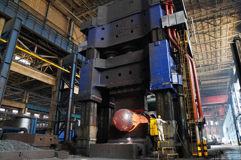 5月初,在中國一重集團有限公司鑄鍛鋼事業部水壓機鍛造廠,廠長許四海正和工人操作萬噸水壓機,一個紅彤彤的鋼坯在水壓機錘煉下,慢慢變成了大型工件。