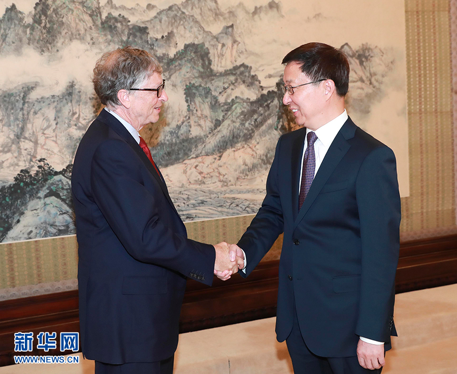 11月8日,中共中央政治局常委、國務院副總理韓正在北京中南海紫光閣會見美國泰拉能源公司董事長、微軟公司創始人比爾·蓋茨。 新華社記者 龐興雷 攝