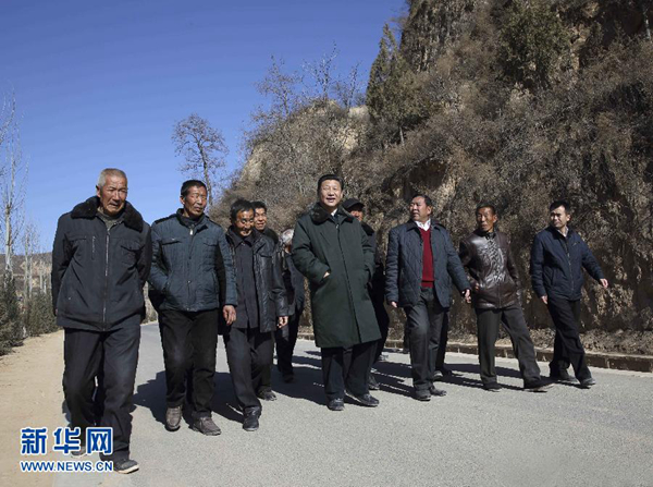 2015年2月中旬,習近平到陜西看望慰問群眾,特意找來當年陜甘寧革命老區所屬范圍的市縣領導人,一起開了陜甘寧革命老區脫貧致富座談會,了解情況,明確思路,推進工作。