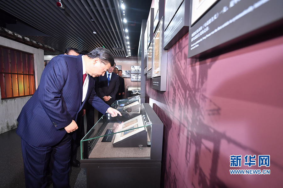 2017年10月31日,中共中央總書記、國家主席、中央軍委主席習近平帶領中共中央政治局常委李克強、栗戰書、汪洋、王滬寧、趙樂際、韓正,瞻仰上海中共一大會址和浙江嘉興南湖紅船。這是31日上午,習近平等在上海中共一大會址紀念館參觀。新華社記者 李濤 攝