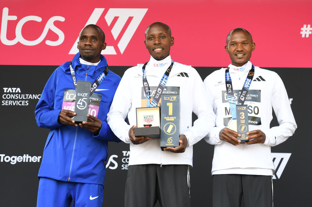 男子精英組較量中,馬拉松傳奇基普喬格雖然前30公里都身處領跑集團,但隨后逐漸掉隊,最終以第六的名次結束比賽,落后冠軍接近3分鐘?;諉谈竦目夏醽喭_維以2小時02分27秒的成績折桂,烏干達選手基普利莫以1分10秒之差排名第二。
