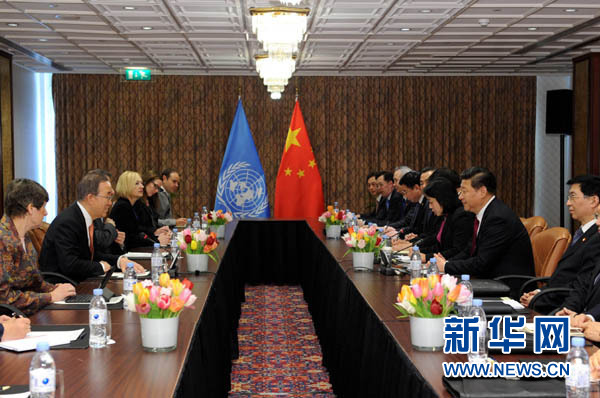 3月23日,國家主席習近平在荷蘭會見聯合國秘書長潘基文。 新華社記者 饒愛民 攝