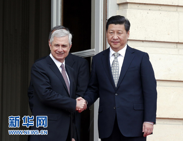 ????3月27日,國家主席習近平在巴黎會見法國國民議會議長巴爾托洛內。 新華社記者 鞠鵬 攝
