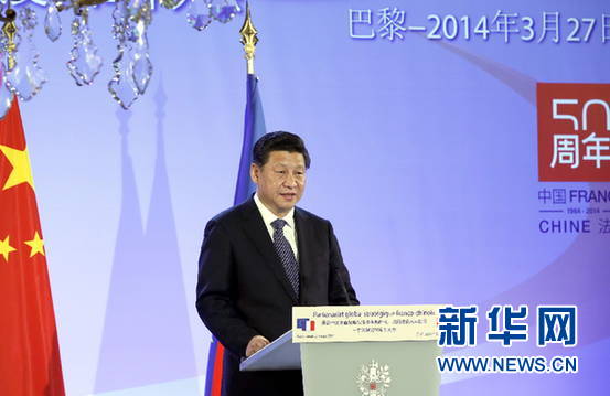 ????新華網巴黎3月27日電(記者李斌 劉華)中法建交50周年紀念大會27日在巴黎舉行。國家主席習近平和法國總統奧朗德共同出席并發表重要講話。習近平總結中法關系50年來的成功經驗,闡述對兩國關系發展的政策主張,希望中法兩國人民在實現中國夢和法國夢的過程中相互理解、相互幫助,共同實現“中法夢”。