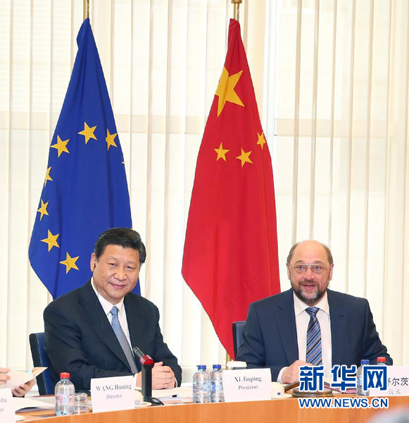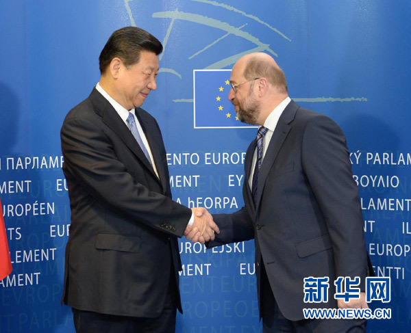 ????新華網布魯塞爾3月31日電(記者孟娜 徐劍梅)國家主席習近平31日在布魯塞爾會見歐洲議會議長舒爾茨。