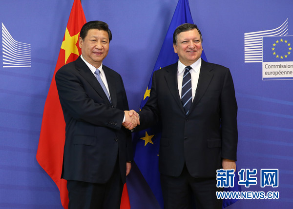 ????3月31日,國家主席習近平在比利時布魯塞爾會見歐盟委員會主席巴羅佐。 新華社記者 龐興雷 攝