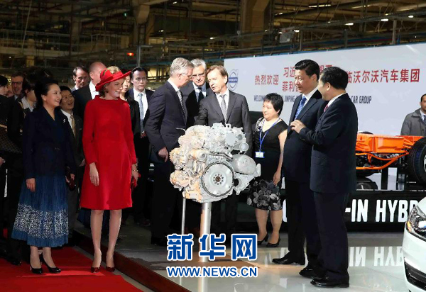 ????新華網北京4月1日電 據新華社“新國際”微博報道,1日上午,即將結束訪歐行程的習近平主席在菲利普國王夫婦陪同下,參觀了比利時最大的汽車生產企業沃爾沃根特工廠,受到中比兩國員工夾道歡迎。習近平饒有興致地觀看展品,不時詢問生產情況。企業負責人還把一個手工制造的“中國紅”汽車模型贈給習近平。