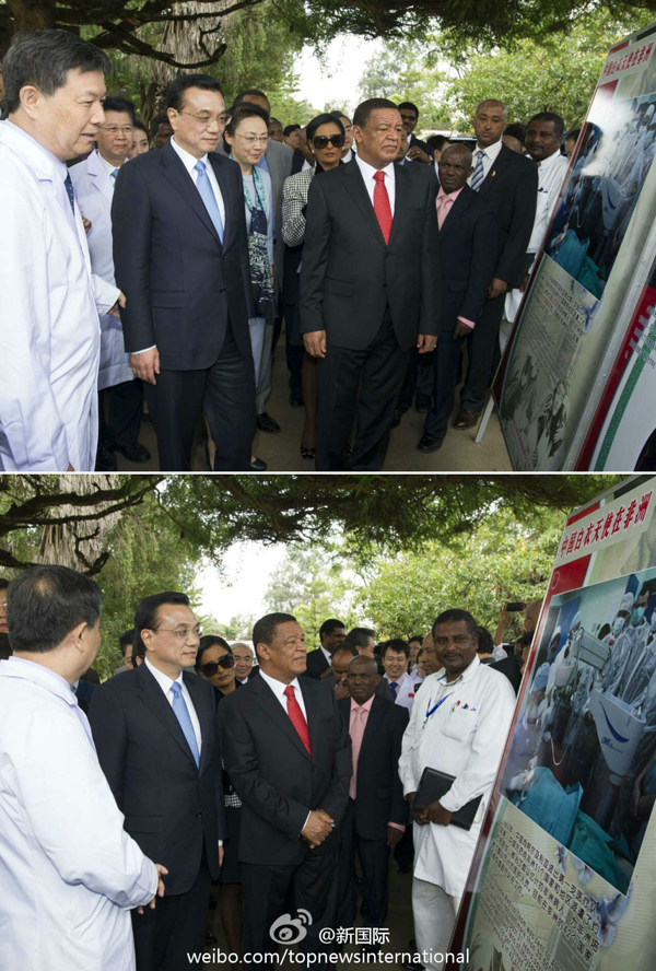 ??? 李克強與夫人程虹6日與埃塞俄比亞總統穆拉圖夫婦在總統官邸國家宮會見。李克強說,我們校友見面格外親切!總統先生在中國學習工作多年,為中埃、中非關系的發展作出了重要貢獻。穆拉圖總統曾在北京大學學習十余年,是李克強總理的校友,也是“中國通”。
