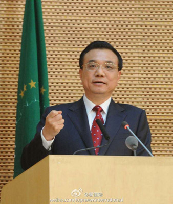 新華網北京5月6日電 據新華社“新國際”微博報道,李克強總理5日在非盟會議中心演講時談到:中國愿意毫無保留地與非洲共享先進技術與發展經驗,不斷加強中非生態環保領域合作,增強人文互動,同心共創中非關系更加美好的未來,在國際舞臺展示中非鋼鐵般的朋友情誼。