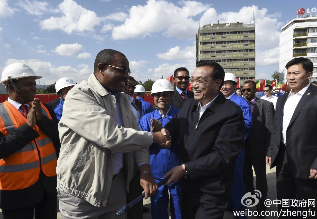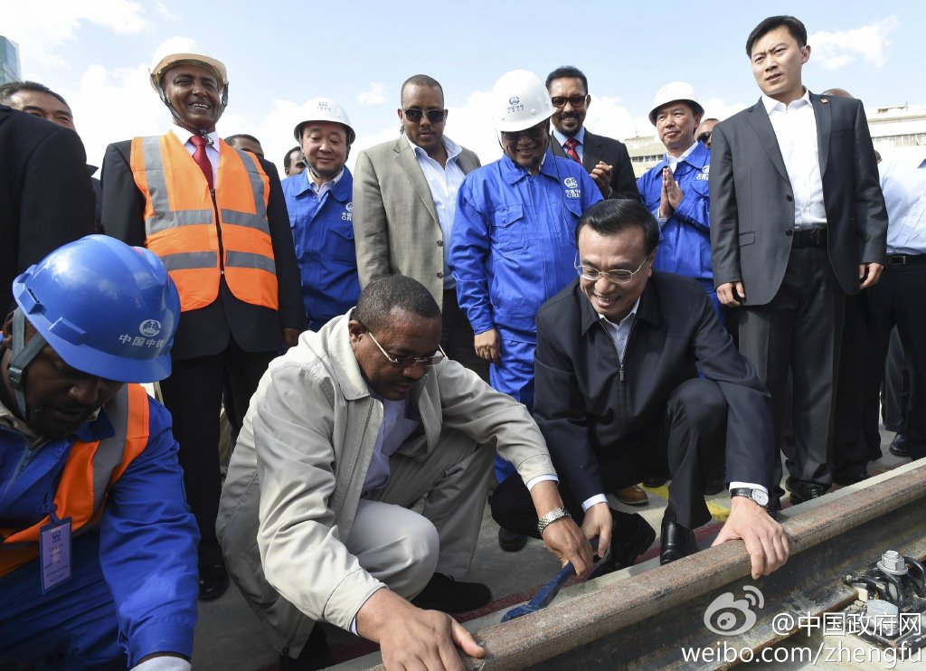 ????新華網北京5月6日電 據中國政府網微博報道,當地時間5日下午,李克強在埃塞俄比亞總理海爾馬里亞姆陪同下,參觀中方承建的亞的斯亞貝巴輕軌項目。他對工人說,埃塞俄比亞是東非乃至非洲的高地,你們一定要確保質量,打出品牌,建成中國裝備、鐵路走出去的高地,讓非洲人民受益。