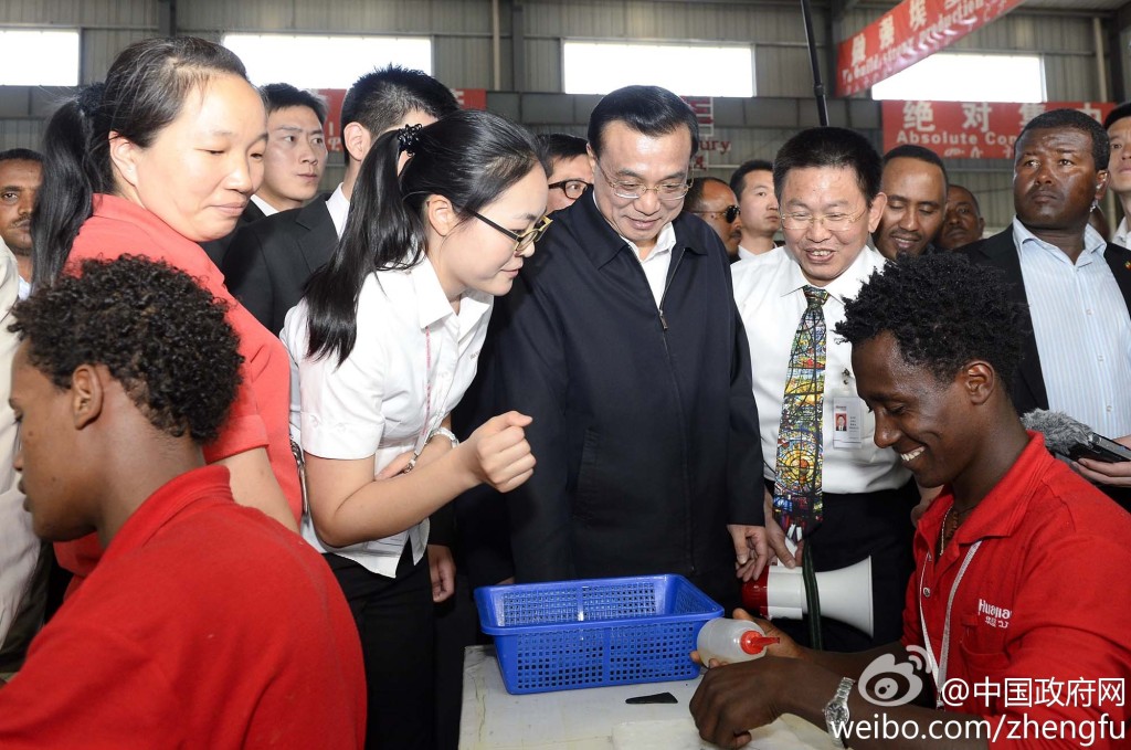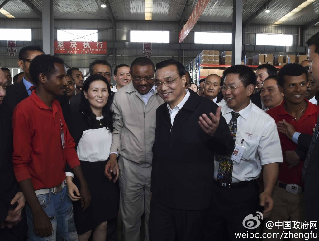 新華網北京5月6日電 據中國政府網微博報道,5日下午,李克強在埃塞總理陪同下參觀東方工業園。該園由中方投資興建,目前已為當地提供5000余個就業崗位。李克強說,中國愿意把可轉移的勞動密集型產業優先轉移到非洲,帶動當地就業,促進發展,增強非洲自我發展能力,造福雙方人民。