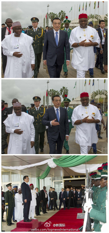 ????新華網北京5月9日電 據新華社“新國際”微博報道,當地時間8日下午,國務院總理李克強結束對尼日利亞的訪問,啟程前往安哥拉繼續訪非行程,尼日利亞外長、勞工部長等官員到機場送行。