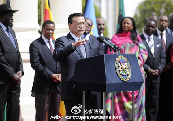 ????新華網北京5月11日電 據新華社“新國際”微博報道,中國和肯尼亞11日簽署了有關蒙巴薩-內羅畢鐵路合作協議。李克強總理說,這是非洲互聯互通的重大項目。中國在非洲的基礎設施項目不僅是項目的合作,還是人與人之間的交流、心與心之間的溝通。中非23億人攜手發展,將會改變世界格局。?