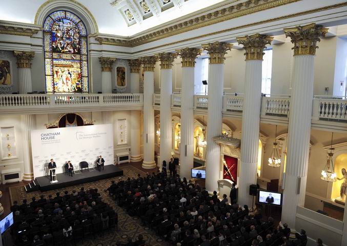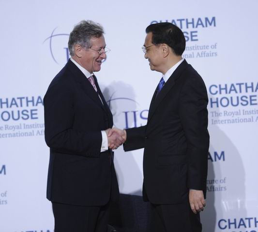 ??? 【英兩家頂級智庫搭臺 傾聽中國總理聲音】18日,李克強在擁有悠久歷史、金碧輝煌的倫敦金融城市長官邸,面向300多位智庫成員發表了題為《共建包容發展的美好世界》的演講?;始覈H事務研究所和國際戰略研究所同為全球頂級智庫。此間輿論認為,由兩家研究所共同舉辦同一場演講極為罕見。