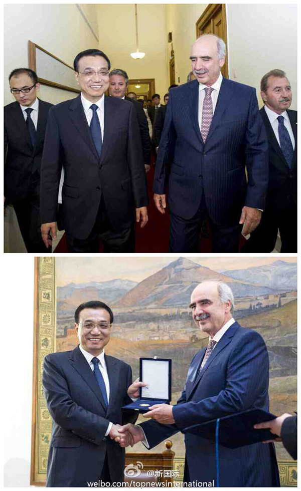 ??? 新華網北京6月20日電 據新華社“新國際”微博報道,19日下午,李克強總理在希臘議會大廈會見希臘議長米馬拉基斯,并被授予希臘議會金質勛章。李克強說,立法機構交流合作是中希全面戰略伙伴關系的重要組成部分。中方愿同希臘議會和政黨加強交流合作,希望希臘議會繼續為促進中希合作助力添彩。