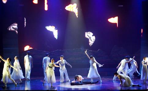 ????此次演出特邀中方以詩經經典《關雎》《摽有梅》開場,演員錦衣華服,緩緩起聲,琴音低沉哀鳴高亢交錯,歌聲余音繞梁之際,韓國音樂劇《蝴蝶博士》華麗登場。伴隨著樂隊的現場演奏,音樂劇主角石宙明以大段韓語獨白震撼全場,兩側屏幕同步顯示中文翻譯。為照顧現場觀眾,韓方演員遇到簡單詞匯則以普通話來詮釋劇情,引發現場觀眾共鳴。兩個節目在動與靜,內斂與奔放中,碰撞出藝術火花。中韓兩國藝術家跨越語言障礙,用不同的藝術形式表達了共同的愿望:思考生活,憧憬未來。