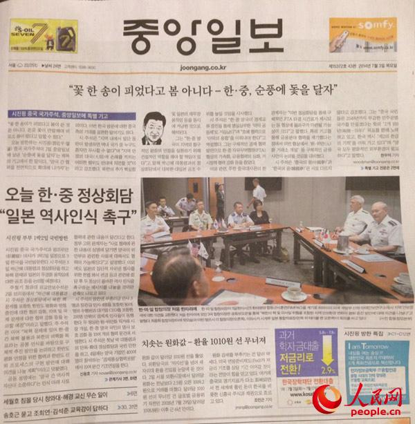 ??? 韓國《中央日報》在頭版頭條位置刊發習近平主席署名文章《風好正揚帆》 金慧廷 攝