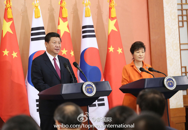 ????新華網北京7月4日電 據新華社“新國際”微博報道,習近平主席3日在同韓國總統樸槿惠會談后共見記者時說,我和樸槿惠總統同意,兩國將加大中韓自貿區談判力度,爭取在年底前結束談判,為到2015年雙邊貿易額達到3000億美元的目標創造更好條件。