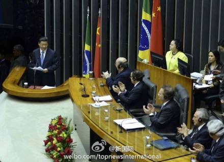 ??? 新華網北京7月17日電 據新華社“新國際”微博報道,習主席在演講中著重闡述了維護和弘揚國際公平正義,他表示,我們應該倡導人類命運共同體意識,建立更加平等均衡的新型全球發展伙伴關系。應該加強在國際和多邊機制內的協調和配合,凝聚發展中國家力量,積極參與全球治理,為發展中國家爭取更多制度性權力和話語權。?