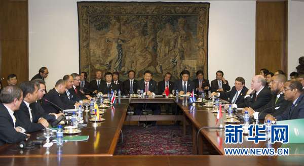 ????新華網巴西利亞7月17日電(記者孟娜 李斌)7月17日,國家主席習近平在巴西利亞會見拉美和加勒比國家共同體輪值主席國哥斯達黎加總統索利斯、前任輪值主席國古巴國務委員會主席兼部長會議主席勞爾·卡斯特羅、候任輪值主席國厄瓜多爾總統科雷亞、加勒比共同體輪值主席國安提瓜和巴布達總理布朗。