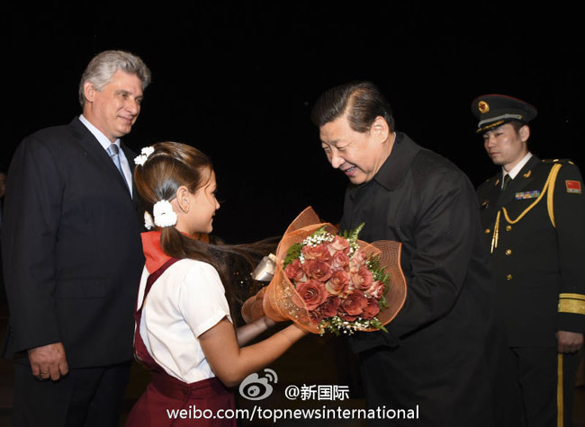 ???? 新華網北京7月22日電 據新華社“新國際”微博報道,結束對委內瑞拉的國事訪問后,習近平主席乘坐的專機經過3個多小時飛行,于當地時間21日晚抵達哈瓦那,開始對“加勒比明珠”古巴的國事訪問。2011年,時任國家副主席的習近平曾經訪問過古巴。(李學仁攝)