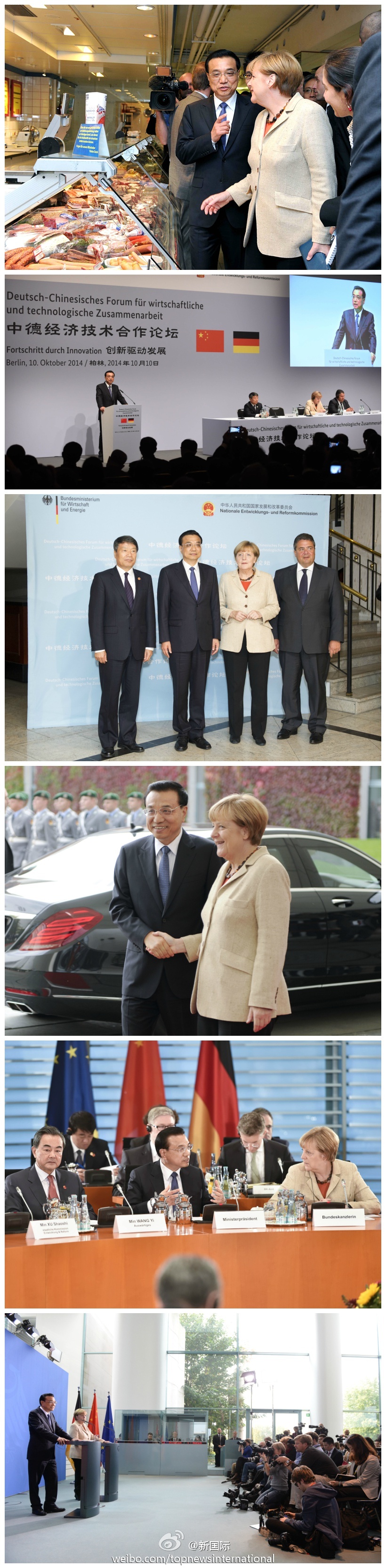 ??? 新華網北京10月11日電? 據新華社“新國際”微博報道,10日,李克強對德國訪問日程異常繁忙。兩國總理共同主持了規??涨暗牡谌喼械抡枭?,出席了中德經濟技術論壇、簽字儀式,共見記者,參觀皇家瓷器廠……當天默克爾同李總理一起出席了12場活動,長達10個小時的深度會晤,共同規劃中德務實合作升級版。