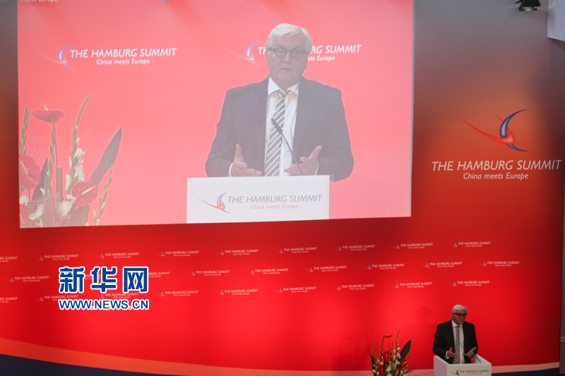 ??? 10月11日,在德國漢堡舉行的中歐論壇漢堡峰會上,德國外交部長施泰因邁爾發言。中歐論壇漢堡峰會第六屆會議11日在德國漢堡閉幕。本屆峰會以“中國與歐洲相遇”為主題。來自中歐政治、經濟和學術界的500多位代表聚集在一起,探討中歐經貿合作未來趨勢、中國經濟的綠色發展等重要議題。新華社記者張帆攝