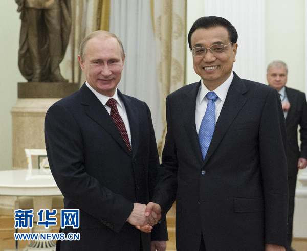 10月14日,國務院總理李克強在莫斯科克里姆林宮會見俄羅斯總統普京。 新華社記者 饒愛民 攝