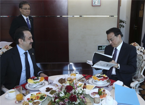 ????新華網北京12月16日電 據新華社“新華國際”客戶端報道,“一日之計在于晨”??藦娍偫?5日的緊張日程從一頓早飯開始。天剛蒙蒙亮,哈薩克斯坦總理馬西莫夫就來到克強總理下榻的酒店——北京大廈,邀請克強總理一起吃早餐。