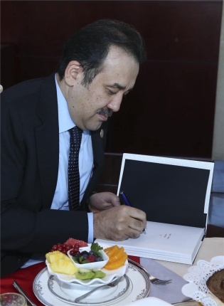 ????馬西莫夫總理則回贈給克強總理自己所著《哈薩克斯坦》一書的中譯本和一個小擺件,他還特意在書的扉頁上簽上了自己的名字??磥?,這位“中國通”也希望咱們的總理更深入地了解他的國家。