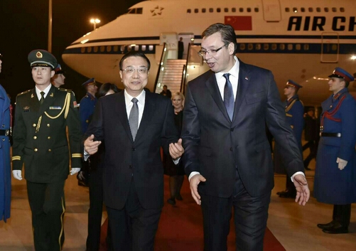 李克強抵貝爾格萊德,塞總理率兩位副總理到機場迎接