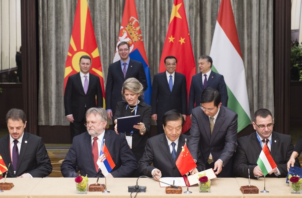 ????17日上午,中國、匈牙利、塞爾維亞、馬其頓四國總理共同見證了合作建設中歐陸??炀€北段匈塞鐵路的諒解備忘錄和通關便利化協議的簽署,為中歐陸??炀€的建設奠定了重要基礎。