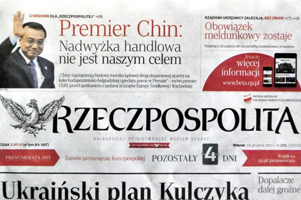 波蘭《共和國報》刊登對李克強聯合書面采訪稿件