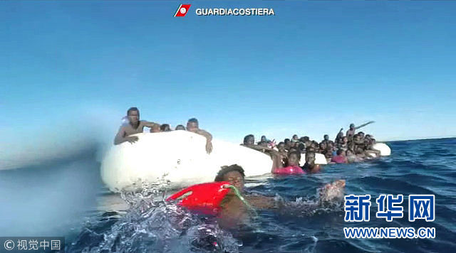 當地時間2018年1月6日上午,利比亞附近海域發生了一起非法移民船傾覆事故。在巡邏飛機發現該遇險船只后,周圍的意大利海岸警衛隊及意大利海軍船只迅速駛近實施救援,成功救起80余人,同時發現了8名遇難者。據外媒報道,這艘小船從該國海岸出發時載有超過100人。(圖片來源:視覺中國)