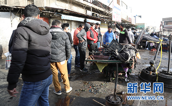 1月15日,在伊拉克首都巴格達,人們聚集在爆炸現場附近。 新華社發(哈利勒·達伍德攝)