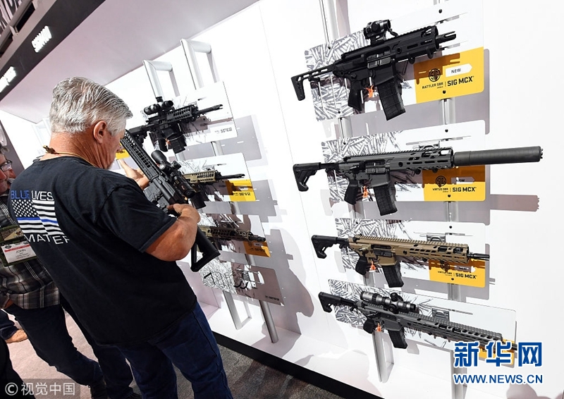 當地時間2018年1月23日,美國拉斯維加斯,美國全國射擊運動基金會(NSSF)舉辦槍支展銷會。(圖片來源:視覺中國)