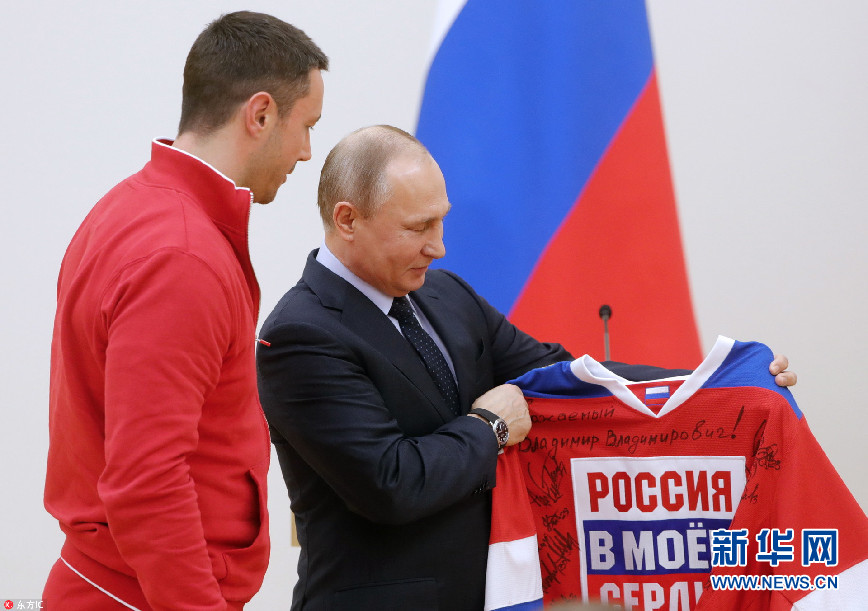 普京會見俄羅斯征戰平昌冬奧會運動員 獲贈簽名球衣