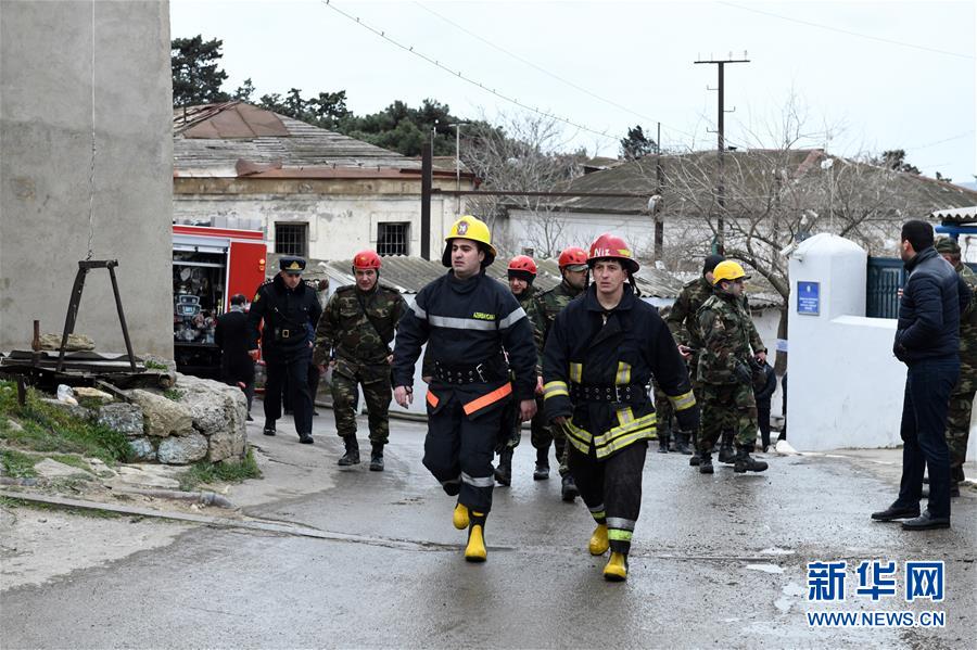 3月2日,在阿塞拜疆首都巴庫,消防人員趕往火災現場救援。 新華社發(巴巴耶夫攝)
