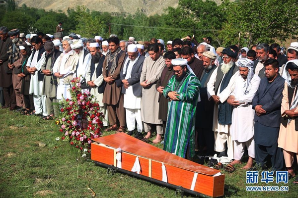 4月30日,在阿富汗喀布爾省古勒達拉行政區,親友為在襲擊中遇難的法新社喀布爾記者站首席攝影記者沙阿·馬雷舉行葬禮。新華社發(拉赫馬特·阿里扎達 攝)