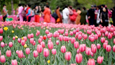長春近百萬株郁金香競相開放 引游客前來參觀