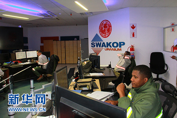 5月11日,在納米比亞西部的中廣核湖山鈾礦,調度員在水冶廠調度室內工作。新華社記者 吳長偉 攝