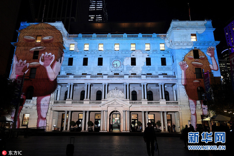 5月24日,澳大利亞悉尼,悉尼燈光音樂節舉行預展,各色各樣的燈光裝置和燈光表演美輪美奐。(圖片來源:東方IC)