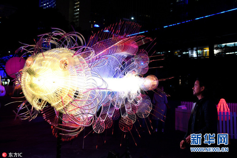 5月24日,澳大利亞悉尼,悉尼燈光音樂節舉行預展,各色各樣的燈光裝置和燈光表演美輪美奐。(圖片來源:東方IC)