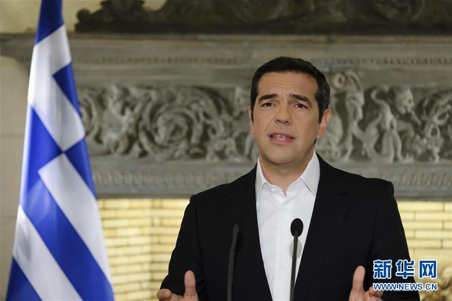6月12日,在希臘雅典,希臘總理齊普拉斯發表電視講話。新華社發(安德里·博內提攝)