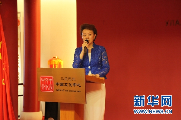 中國駐蒙古國大使館文化參贊兼烏蘭巴托中國文化中心主任李薇致辭。新華網發 蘇力雅攝