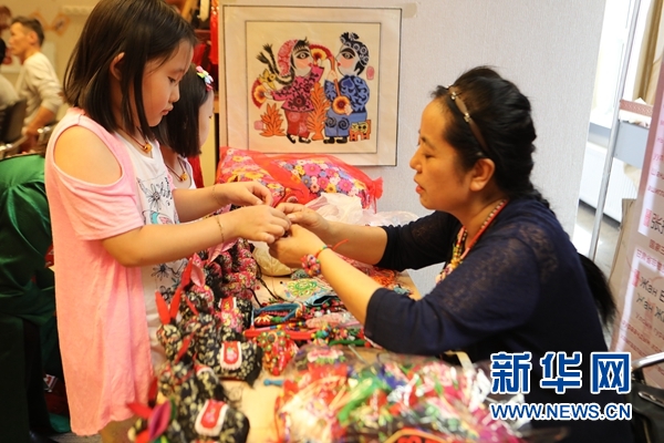 蒙古國一位小觀眾體驗制作手鏈。新華網發 蘇力雅攝