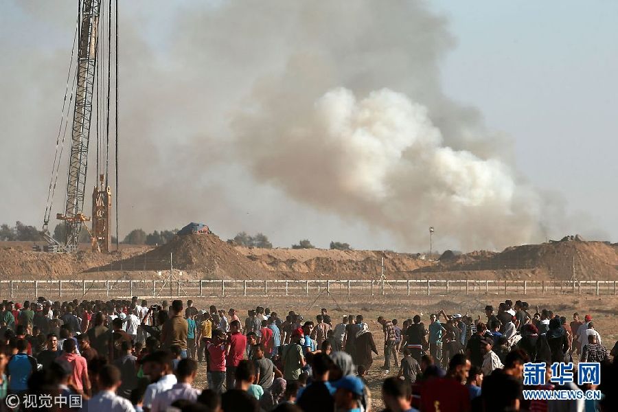 當地時間2018年7月27日,加沙,巴勒斯坦民眾在加沙和以色列邊境舉行大規模的示威活動。(圖片來源:視覺中國)